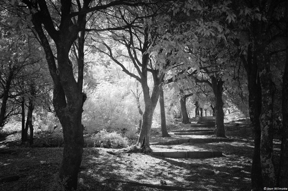 Pour avoir une description de la technique photographique utilisée (blanc et noir, via un appareil pour infrarouge) ou pour m’accompagner dans la totalité de la promenade, je vous invite à cliquer ICI.