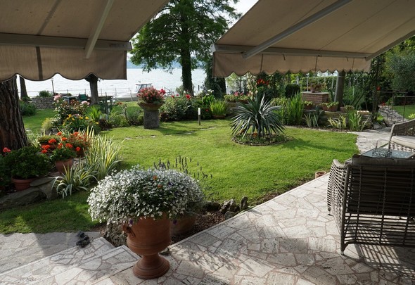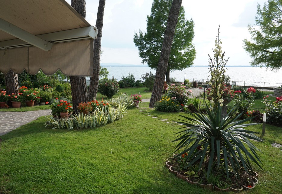 De multiples traghetti défilent quotidiennement à quelques mètres de jardin (une distance d’au moins cinq mètres de la rive est requise), et nous voyons sur leurs passerelles des touristes mitraillant le jardin à qui mieux-mieux.