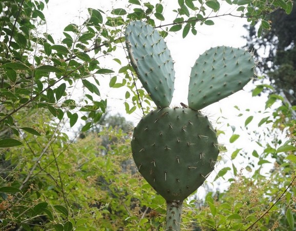 Pour finir, une note humoristique. Silhouette de tête de lapin d'un des cactus à l'entrée de la maison. © Dinu Wilmotte