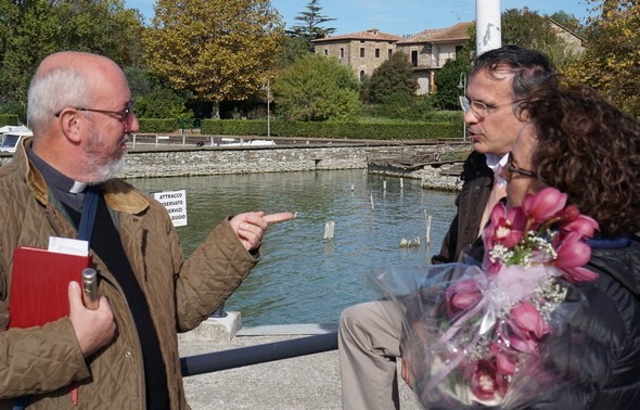 A Tuoro-Navaccia, imbarco di alcuni partecipanti ai funerali. Caricamento di fiori. 12:40.