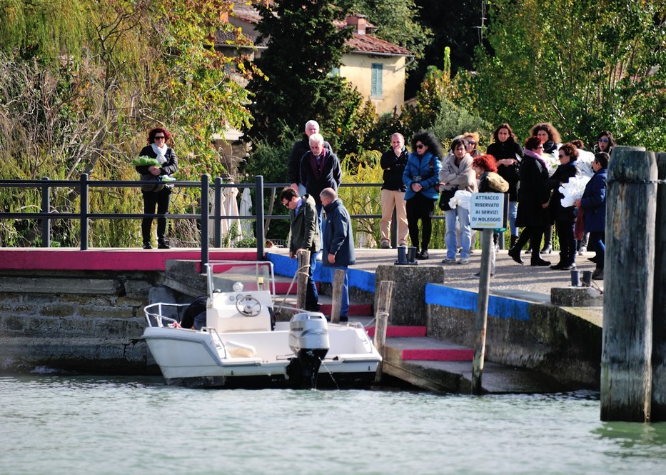 Una delle ultime barche che sbarca dei partecipanti a questi funerali.