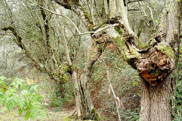 Troncs plus ou moins “torturés”, bien visibles après nettoyage de la végétation de leur sous-bois.