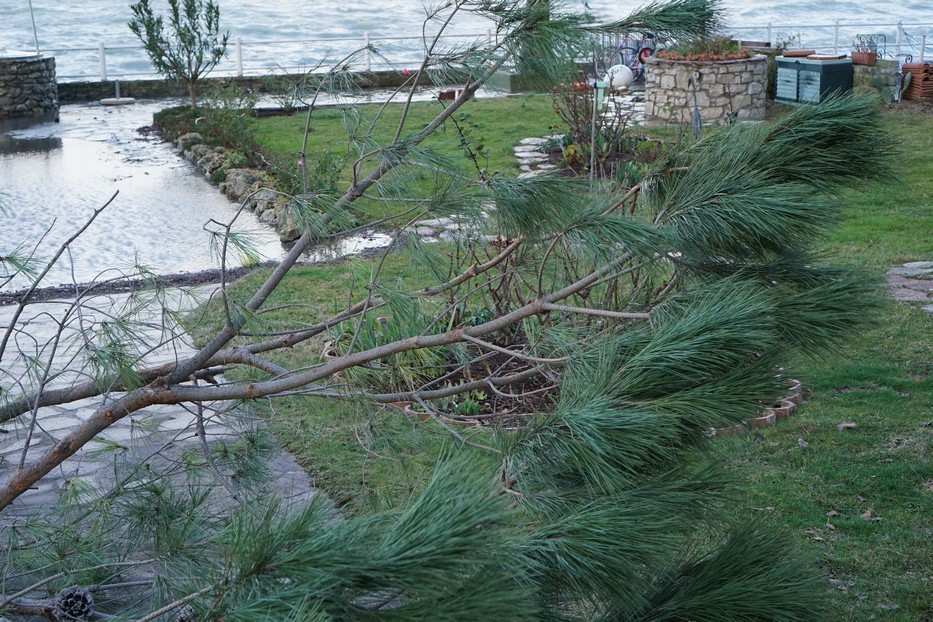 Questo episodio ha causato il crollo di un grande ramo nel nostro giardino e soprattutto il capovolgimento della nostra barca.