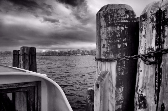 Dans le froid, le glacial et la pluie, Fabienne guette impatiemment l'arrivée du traghetto libérateur.