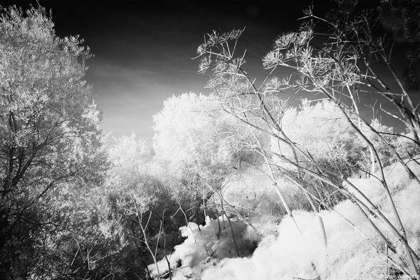 L’uso della tecnologia all’infrarosso dà un aspetto onirico, quasi innevato, alle foto