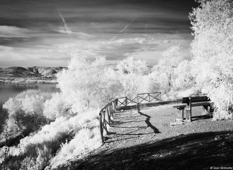 Durant cette phase, la photographie en noir et blanc via l’infrarouge, avec une balance des blancs étalonnée sur 4200k G9, permet d’obtenir des images quasi oniriques caractérisées par des masses à l’aspect neigeux.