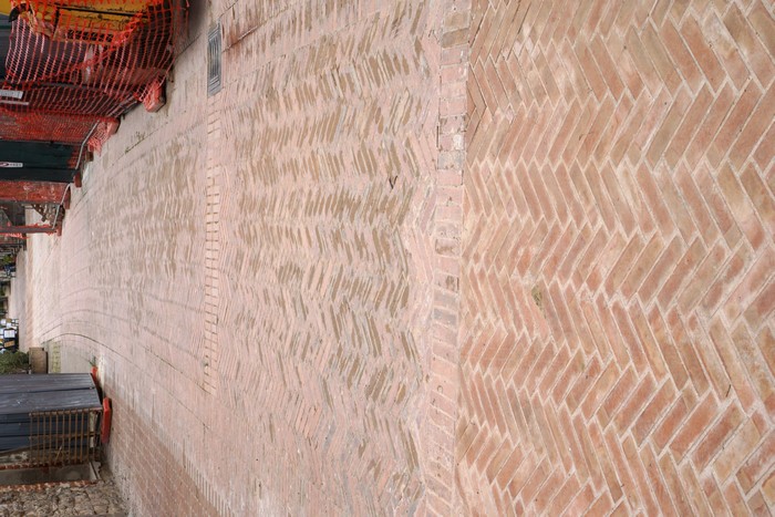 E cosi, nel 2015, la prima fase del restauro di questa pavimentazione è stata effettuata nella parte più settentrionale della via Guglielmi :