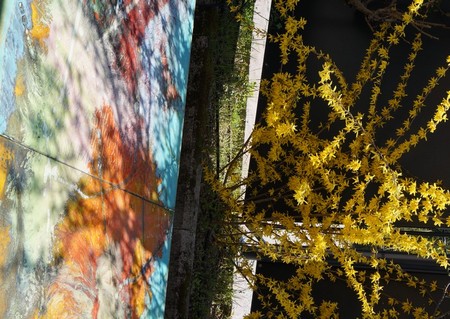 Outre les décorations des grilles déjà signalées, l’espace entourant les bâtiments propose également aux chalands de nombreuses productions.