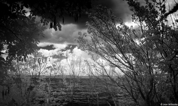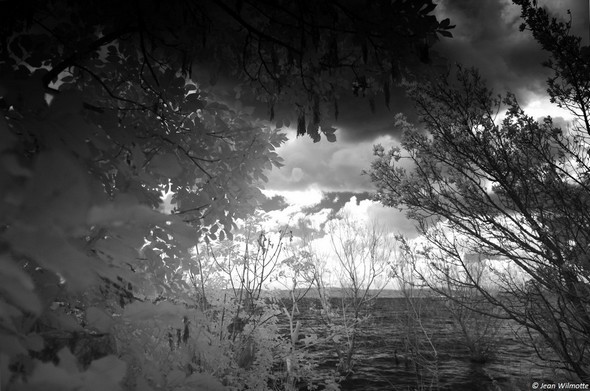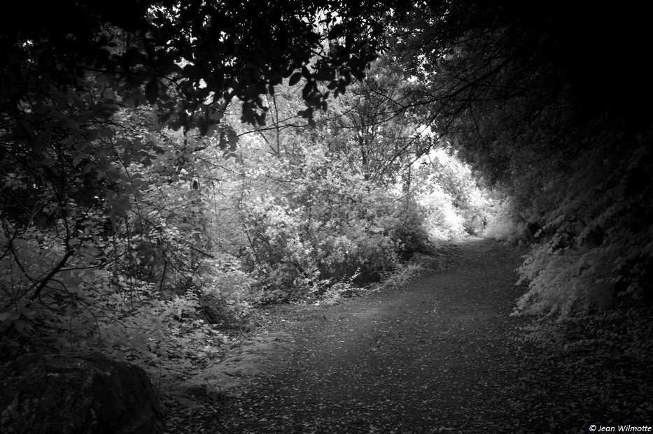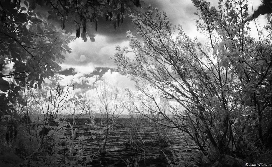 J’ai décidé de profiter des conditions météorologiques particulières (mi-nuageux, mi-ensoleillé) pour me remettre à la recherche des contrastes lumière et parties sombres, en pratiquant comme à l’accoutumée de la photographie en noir et blanc via l’infrarouge.