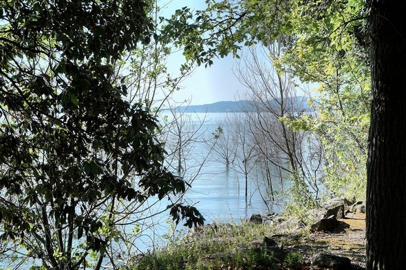 Au fond, la rive sud du lac.