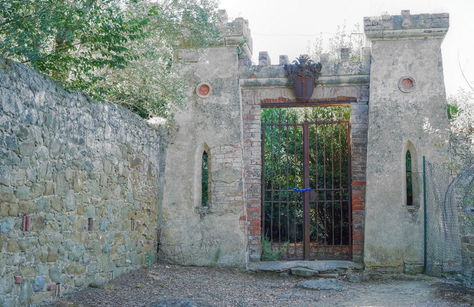 Du côté droit de la strada, le mur d’enceinte du jardin du château Guglielmi.