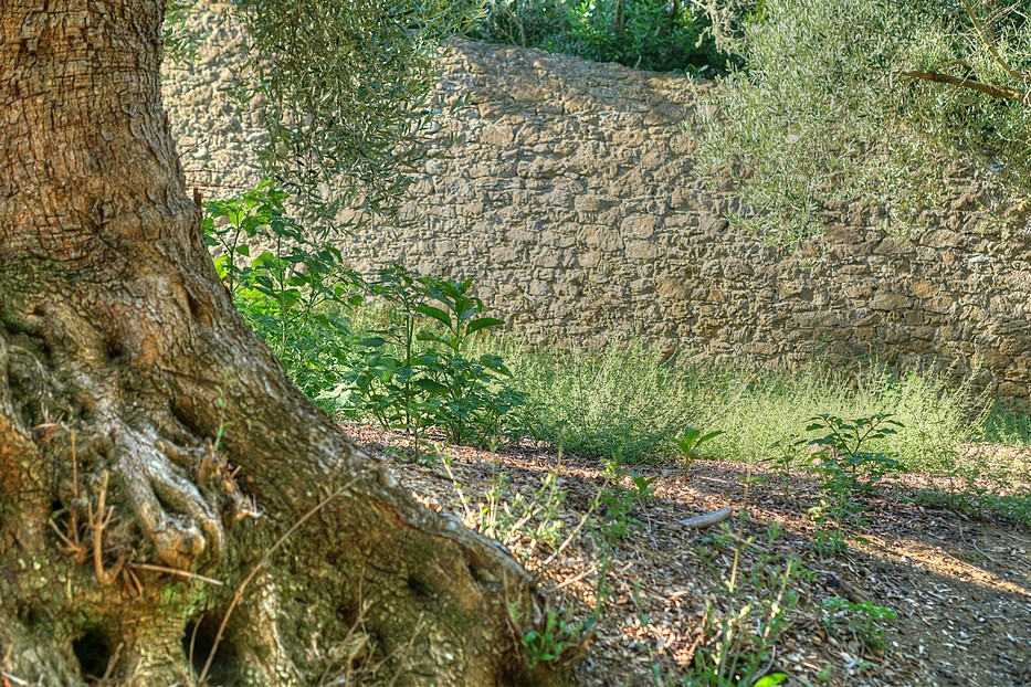Du côté droit de la strada, le mur d'enceinte du jardin du château Guglielmi.