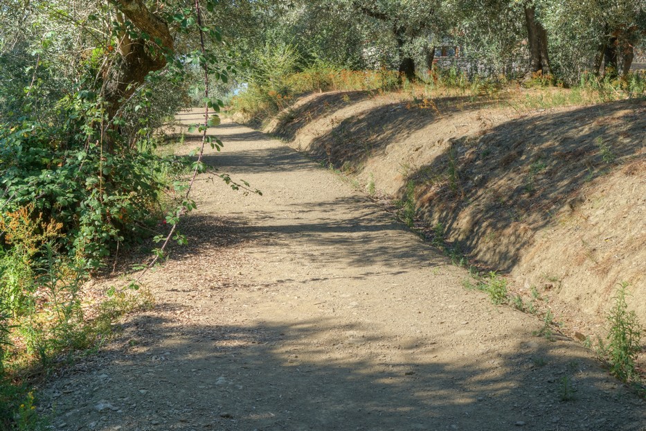 La balustrade tout au fond signe le point de rencontre entra la strada panoramica nord (à gauche) et le sentiero dei lecci (à droite).
