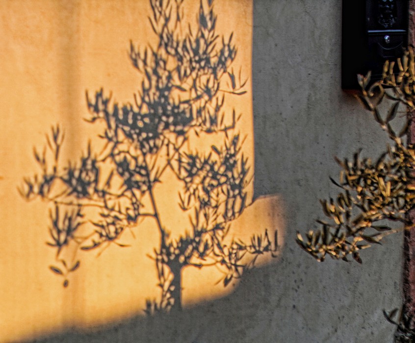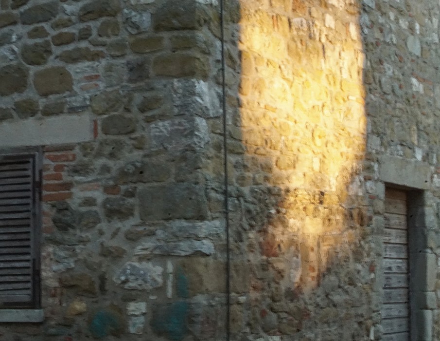 Lors d’une toute récente déambulation dans la via Guglielmi à cette heure privilégiée (17 heures ce jour-là), j’ai observé que, par endroits, des parties du côté est de la rue étaient partiellement décorées par de petites zones de lumière plus intense.
