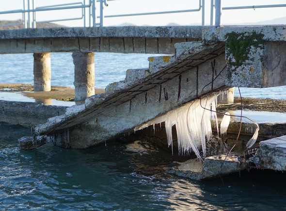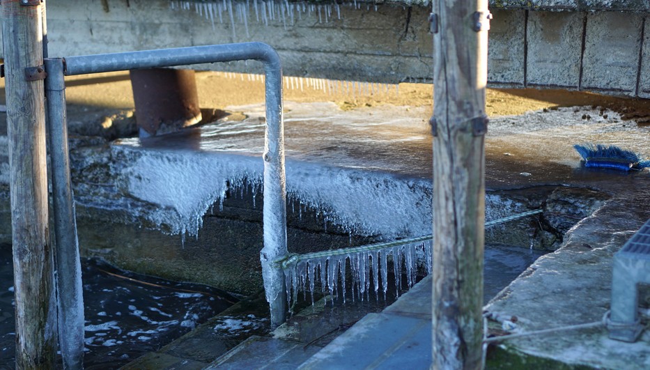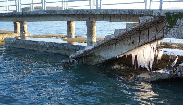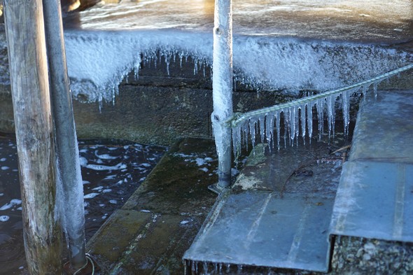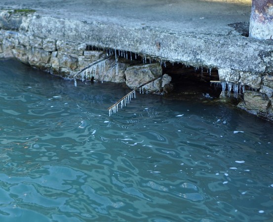 Gel et stalactites au poste d’amarrage de Maurizio.