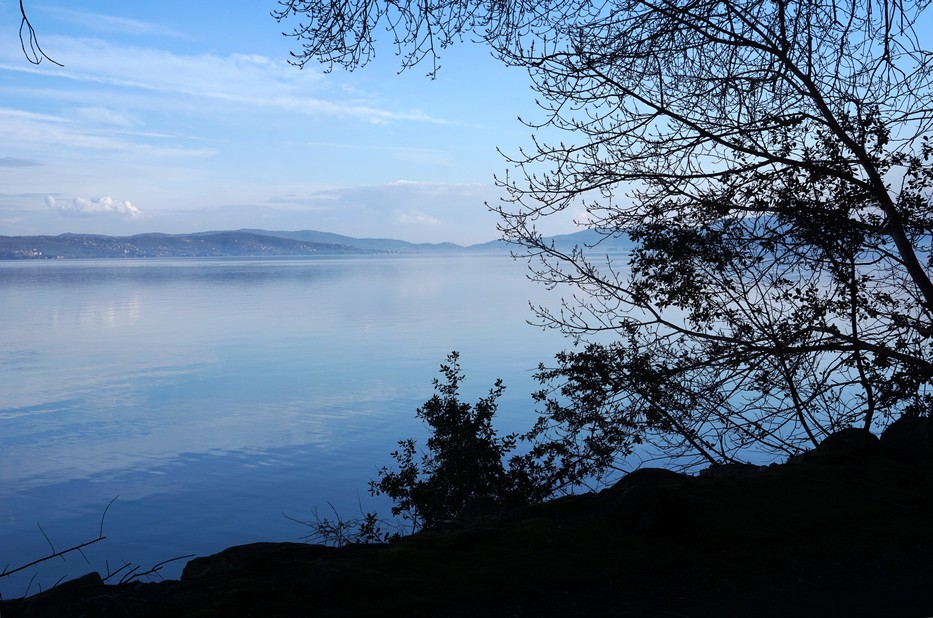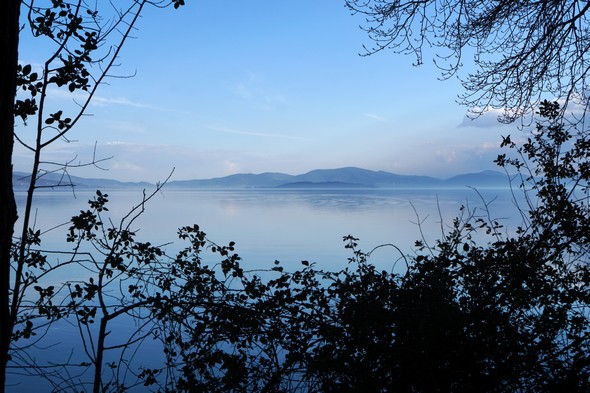 Et toujours cette beauté ineffable des bleus du lac Trasimène en cette fin de journée quasi printanière !