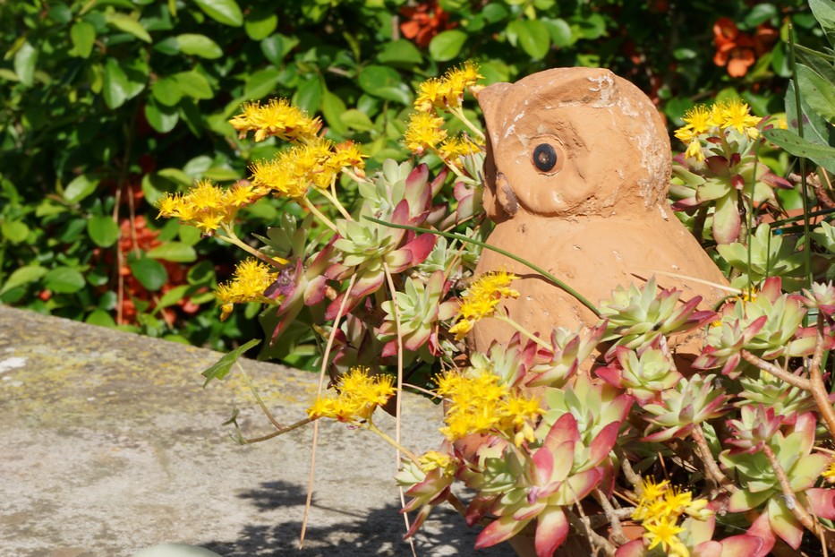 Nous avons déjà eu droit à une visite prolongée d’un véritable hibou dans notre jardin :