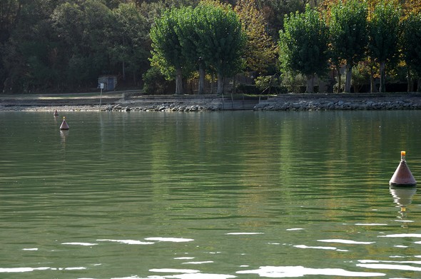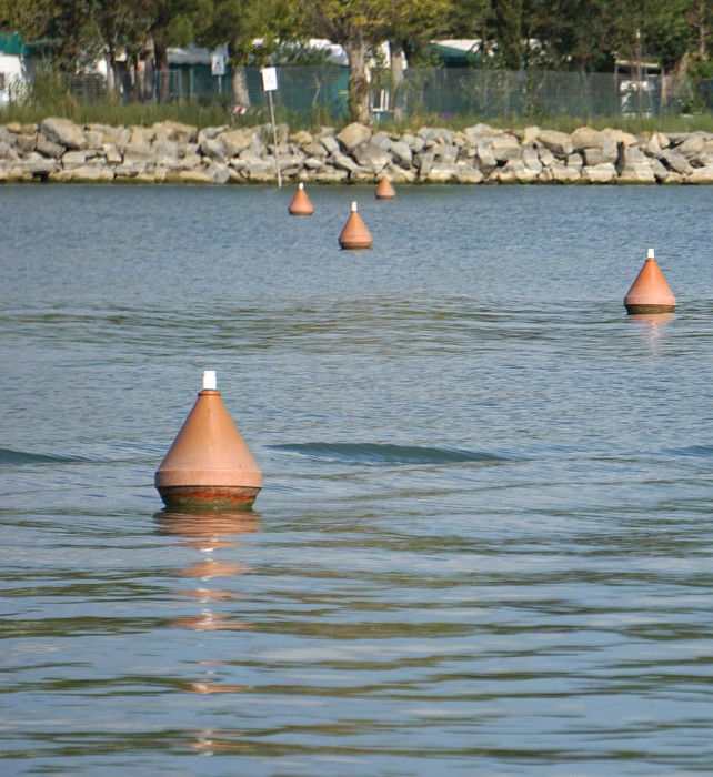 Des bouées rouges (encadré en jaune) en signale la présence aux abords de l’Isola (partie la moins profonde!)