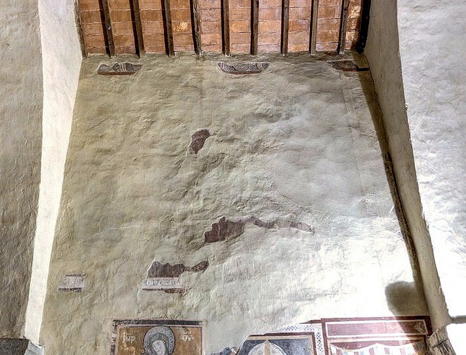 Cette fresque qui est presque complètement perdue, représentait deux saintes qu’on n’a pas pu identifier.