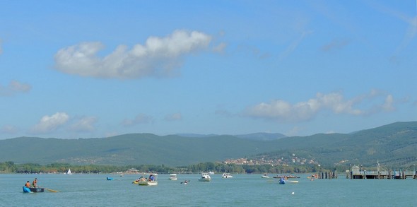 Sur le lac Trasimène, le danger n’est pas comparable àBaltimore : nous n’avons pas besoin d’un bulletin météo pour être averti de l’approche d’une bourrasque, nous en sommes avertis par un simple coup d’oeil. De plus, la traversée entre Tuoro-Navaccia et l’Isola Maggiore est très courte (un kilomètre et quelque à vol d’oiseau).