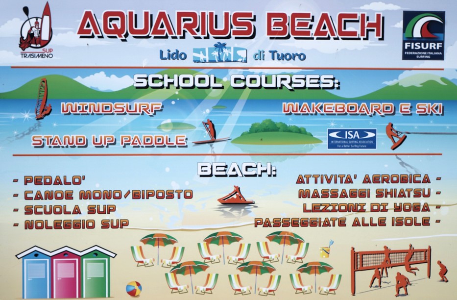 Affichage des multiples activités disponibles au Lido de Tuoro-Navaccia.
