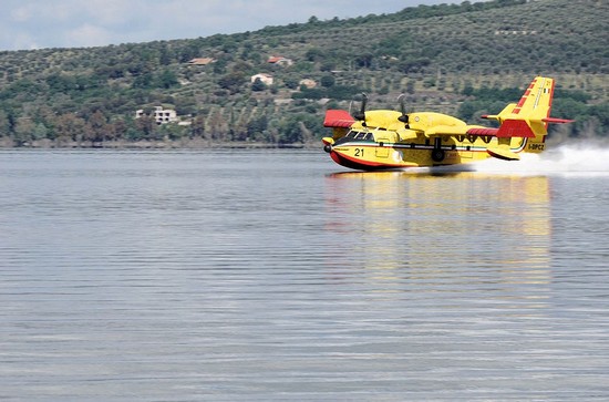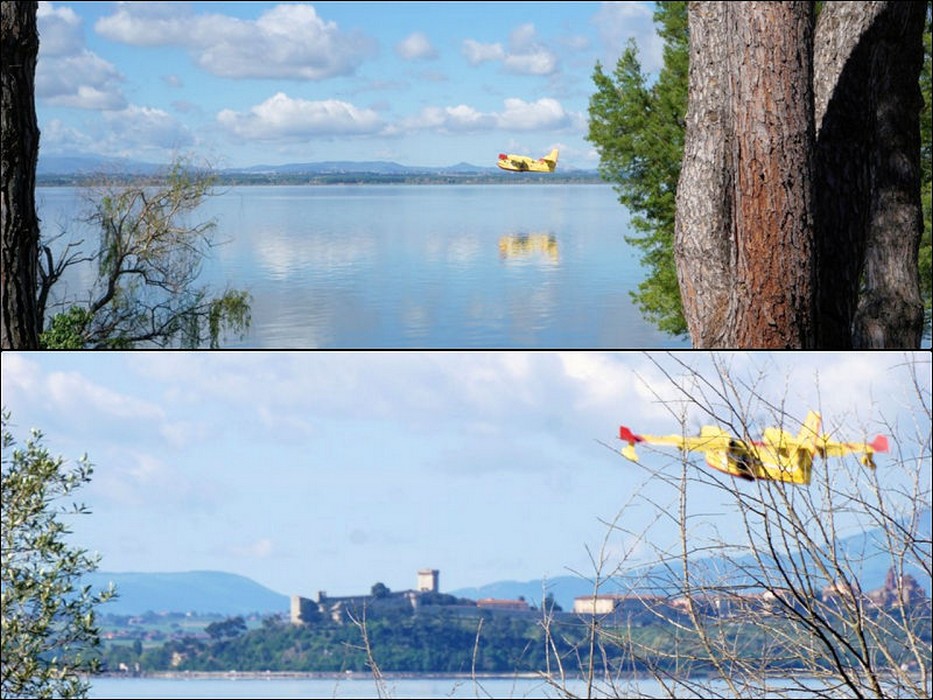 Nous avons déjà eu l’occasion de vous décrire en détail le fonctionnement de ces hydravions qui viennent se charger d’eau sur le lac Trasimène avant d’aller la décharger sur un incendie et de vous rapporter leur utilisation pour sauver une ferme tout au bord du Trasimène, proche de l’Isola: