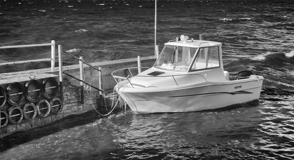 Après s’être cabrée et redressée comme une haute muraille d’eau, la vague balaie notre quai, puis se déverse longuement dans notre darse.