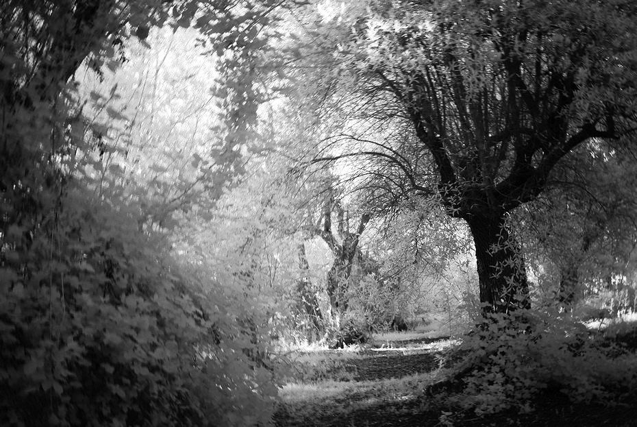 Questa volta, ho di nuovo scelto di passegiare al fine del pomeriggio per sfruttare la luce così calda in quel momento e approfittare dei giochi tra luce e umbra talmente favorevoli per la fotografia in bianco e nero via l’infrarosso.