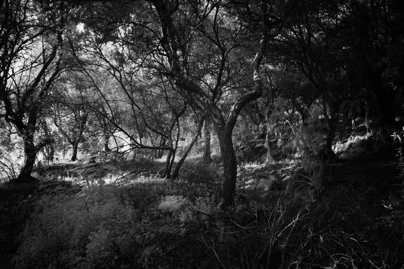 Chemin faisant, j’ai pris quelques photos couleurs jusqu’au moment où j’ai été frappé par une évidence : la belle lumière printanière qui s’infiltrait dans le sombre sous-bois caractéristique du lungolago constituait une irrésistible invitation à user du format « Noir et Blanc ».