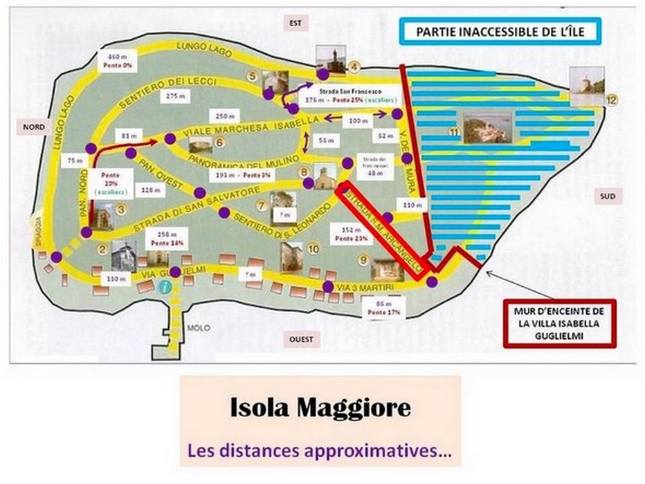 Les photos sont présentées en partant du bas de la strada, jusqu’à l’arrivée finale à la chiesa di San Michele Arcangelo au sommet de l’ Isola Maggiore.