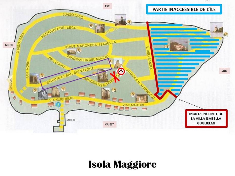 Ce sentier permet soit de descendre ensuite vers l’esplanade de San Francesco au bord du lac, soit de remonter vers la viale Marchesa Isabella Guglielmi et de là, par exemple, vers la chiesa di San Michele Arcangelo.