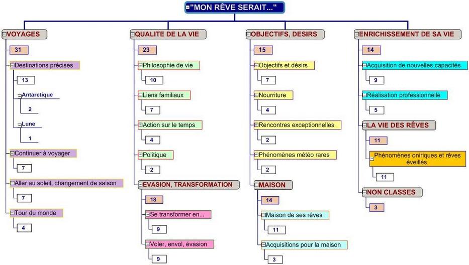 Vu l’ouverture créative permise par le thème du “RÊVE », ne vous étonnez pas que j’aie cru pouvoir isoler 22 thèmes.