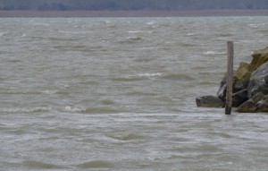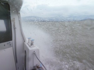 Même à l’abri de la pointe de l’île, l’eau du lac est déjà agitée.