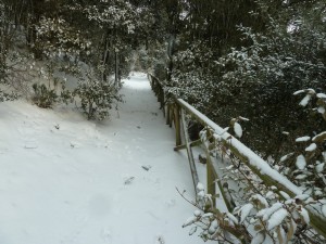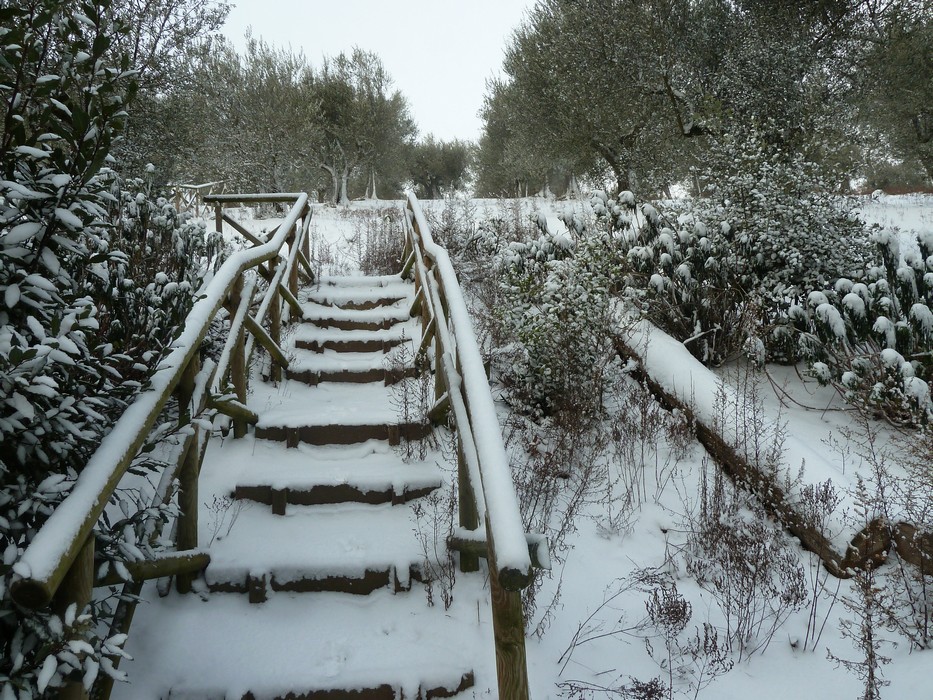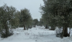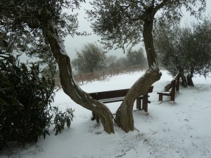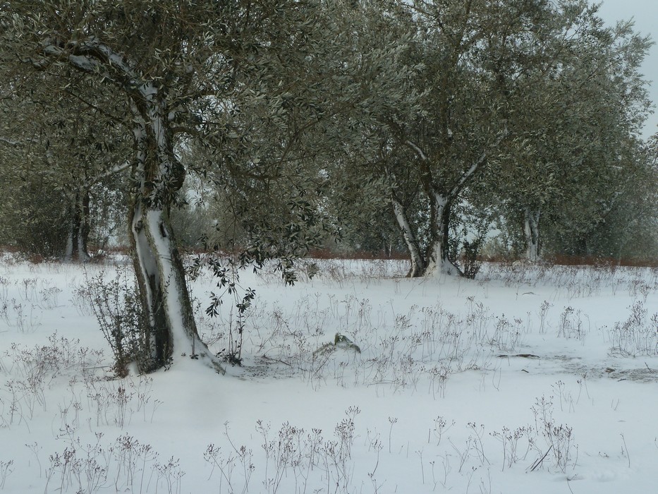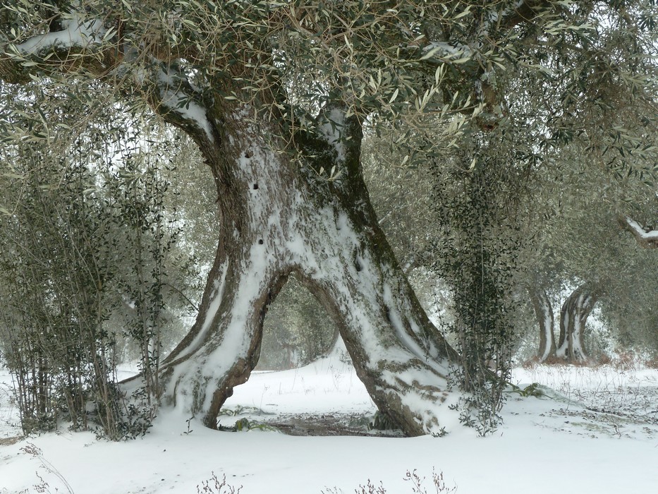 Tout enneigé, cet olivier déjà fort particulier, prend des allures fantômatiques… On dirait que cet arbre va marcher dans la neige…