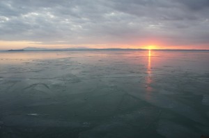 Vue panoramique du coucher de soleil sur le lac Trasimène gelé - 17/02/2012, 17:34