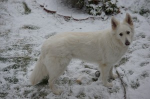Après la mort de nos deux Bouviers des Flandres, à six semaines d’intervalle, nous avons accueilli chez nous un Berger Blanc Suisse de deux mois, Aïka.