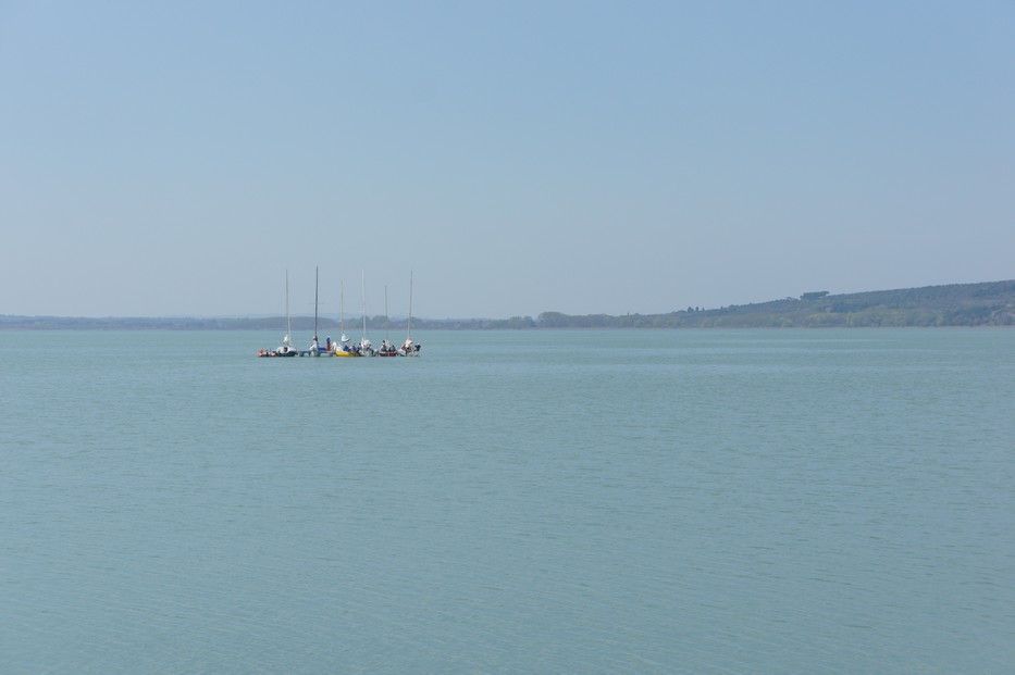 Di mattina, attraversando il lago verso Tuoro-Navaccia, avevo già visto queste barche cercando di competere nonostante un vento più di basso.