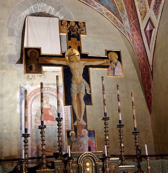 Il ne fut pas toujours placé à cet endroit car des textes anciens signalent à cet endroit la présence du polyptique de Sano di Pietro de Sienne, actuellement exposé au Centro di Documentazione de l’Isola Maggiore.