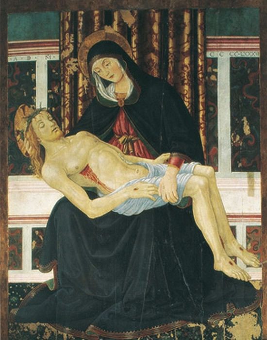 Les œuvres plus tardives, comme la Pietà (1486) ( Vierge de Pitié, ou Mater dolorosa) de la cathédrale de Pérouse, se rapprochent de celles de Fiorenzo di Lorenzo et du jeune Pérugin.