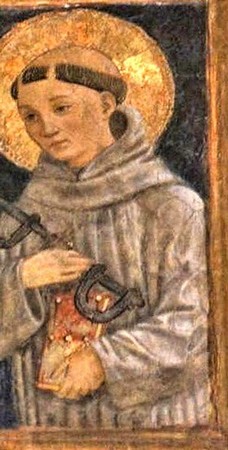 Il est normalement représenté vêtu d’un habit de moine marron, ceint d’une corde.