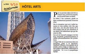 Article concernant la qualité de l’Hôtel Arts, et plus spécialemen de son “Club” (un hôtel dans l’hôtel) dirigé à ce moment par ma fille, Madhubi Wilmotte.