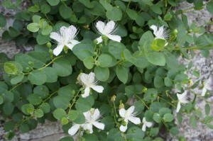 Les câpriers le long de notre rampe d’accès à la maison et au verger.