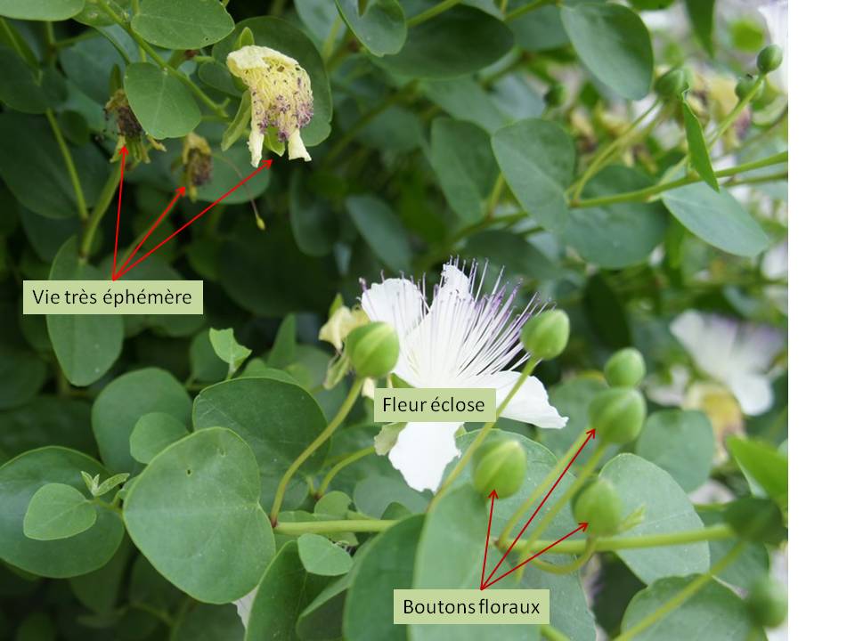 Aujourd’hui, je vais mettre en évidence un des éléments de cette entrée, celui qui me plaît le plus : nos câpriers.