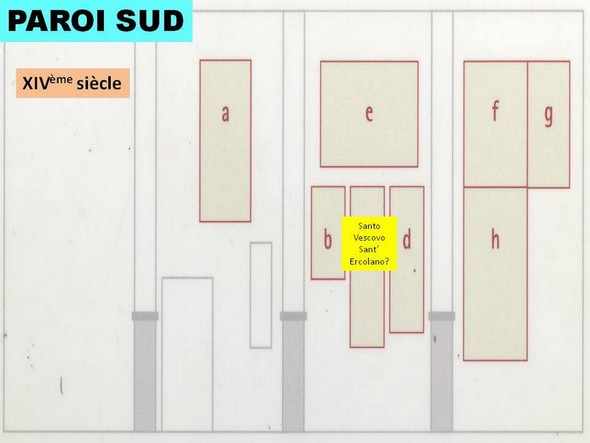 Localisation des fresques du XIV° siècle sur la paroi nord.