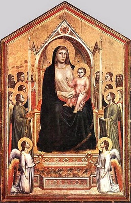 Voyons cela à travers un simple exemple, la Maestà di Ognissanti, peinte par Giotto entre 1300 et 1303 pour l’église Ognissanti de Florence.