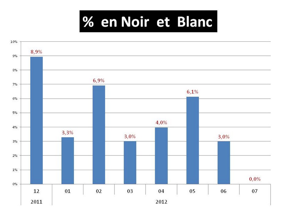 Le rapport de 40%/60% reste stable depuis janvier 2012, à l’exception du mois de février 2012.