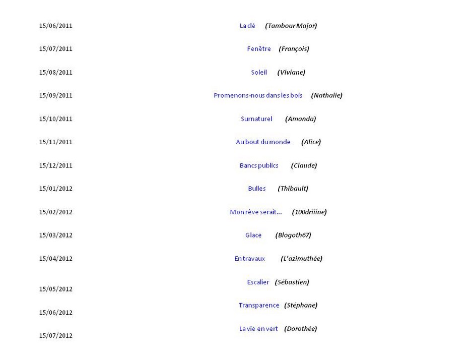 Des 26 participants à la Photo du mois de juin 2010 quand j’ai participé pour la première fois ne restent que Anne, Caro, Cynthia, Guillaume, Nathalie