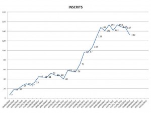Evolution des inscriptions mensuelles depuis la naissance du groupe en mars 2010
