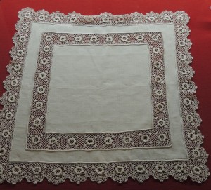 Voyons maintenant quelques beaux mouchoirs en dentelle, réalisés par des habitantes de l’Isola Maggiore.