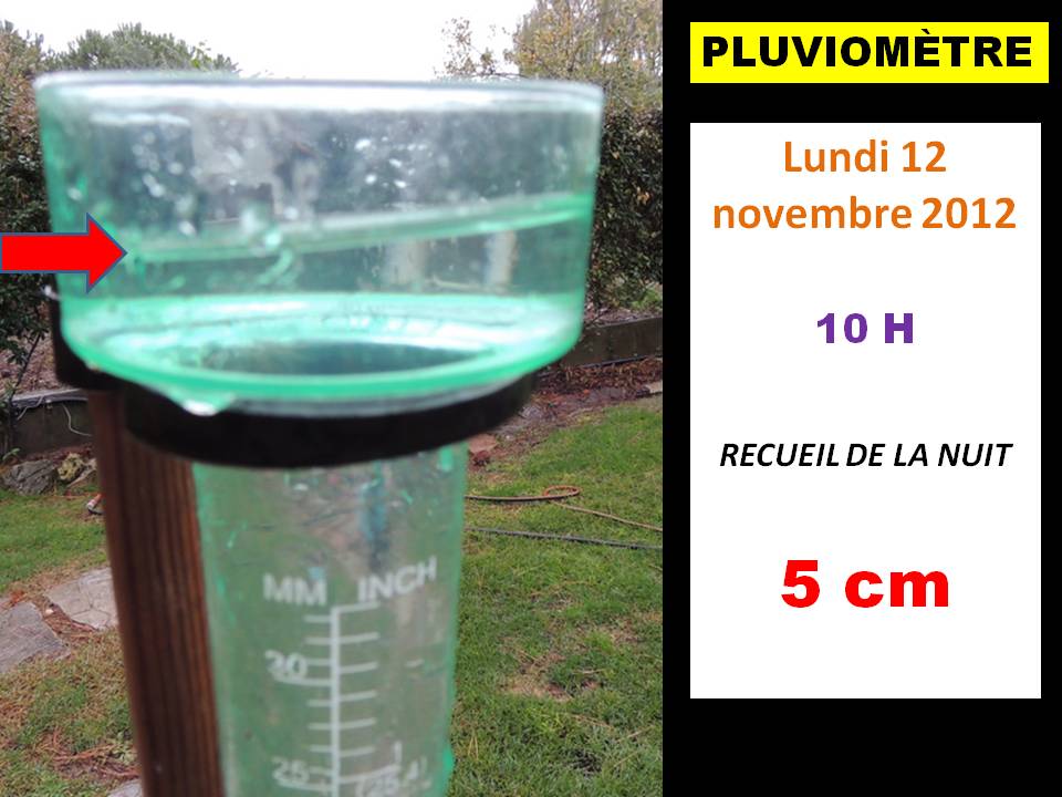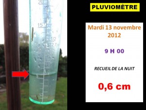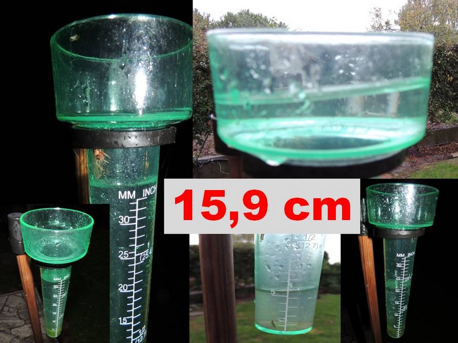 Au total, le pluviomètre de notre jardin a enregistré un apport direct de pluie de 15,9 centimètres entre le dimanche 11 novembre vers 14 heures et le mardi 13 novembre à 9 heures.